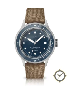 Eine Taucheruhr-Uhr mit einem vielseitigen 38mm Gehäuse, das an fast jedes Handgelenk passt, gefertigt aus Edelstahl mit einem Zifferblatt in blau und einer besonderen "sunburst lacquer"-Oberfläche.