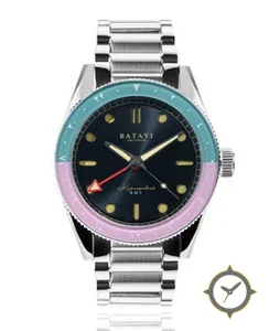 Eine Taucheruhr-Uhr mit einem vielseitigen 39.5mm Gehäuse, das an fast jedes Handgelenk passt, gefertigt aus Edelstahl mit einem Zifferblatt in marineblau und einer besonderen "sunburst"-Oberfläche und einer echten GMT-Funktion, mit der du eine zweite Zeitzone verfolgen kannst.
