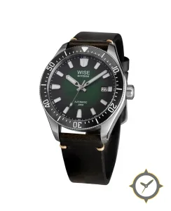 Eine Taucheruhr-Uhr mit einem 37.5mm Gehäuse im Vintage-Stil gefertigt aus Edelstahl mit einem Zifferblatt in grün und einer besonderen "fumé gradient"-Oberfläche.