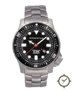 Eine Taucheruhr-Uhr mit einem markanten 52mm Auftritt am Handgelenk, gefertigt aus Edelstahl mit einem Zifferblatt in schwarz und einer besonderen "matte"-Oberfläche.
