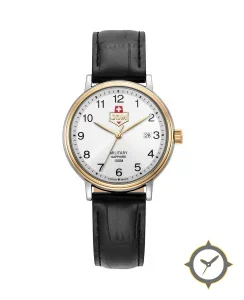Eine Militär-Uhr mit einem vielseitigen 38mm Gehäuse, das an fast jedes Handgelenk passt, gefertigt aus Edelstahl mit einem Zifferblatt in weiß und einer besonderen "radial sunburst"-Oberfläche.