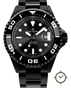Eine Taucheruhr-Uhr mit einem vielseitigen 41mm Gehäuse, das an fast jedes Handgelenk passt, gefertigt aus Edelstahl mit einem Zifferblatt in schwarz und einer besonderen "sunburst"-Oberfläche.