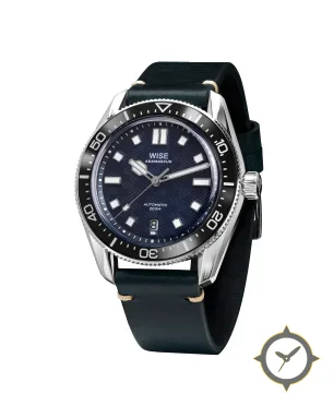 Eine Taucheruhr-Uhr mit einem vielseitigen 39.5mm Gehäuse, das an fast jedes Handgelenk passt, gefertigt aus Edelstahl mit einem Zifferblatt in blau und einer besonderen "wave guilloche"-Oberfläche.
