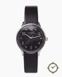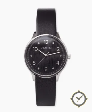 Eine Dress-Uhr mit einem 36.5mm Gehäuse im Vintage-Stil gefertigt aus Edelstahl mit einem Zifferblatt in schwarz und einer besonderen "vertical brushed / subtle wood-grain texture"-Oberfläche.