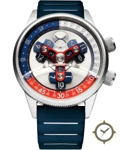 Eine Sport-Uhr mit einem markanten 42mm Auftritt am Handgelenk, gefertigt aus Edelstahl mit einem Zifferblatt in silber und einer besonderen "brushed metallic"-Oberfläche.
