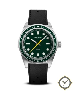 Eine Taucheruhr-Uhr mit einem vielseitigen 40.5mm Gehäuse, das an fast jedes Handgelenk passt, gefertigt aus Edelstahl mit einem Zifferblatt in grün und einer besonderen "matte"-Oberfläche.
