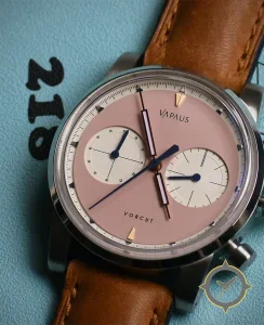 Eine Chronograph-Uhr mit einem vielseitigen 40mm Gehäuse, das an fast jedes Handgelenk passt, gefertigt aus Edelstahl mit einem Zifferblatt in rot und einer besonderen "matte/satin"-Oberfläche.