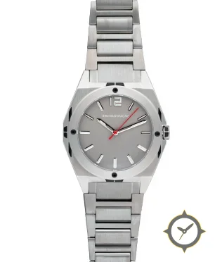 Eine Sport-Uhr mit einem 36.5mm Gehäuse im Vintage-Stil gefertigt aus Edelstahl mit einem Zifferblatt in grau und einer besonderen "matte"-Oberfläche.