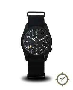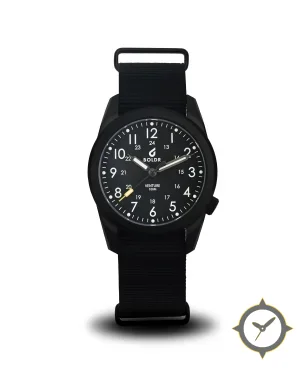 Eine Field-Uhr mit einem 32.5mm Gehäuse im Vintage-Stil gefertigt aus Edelstahl mit einem Zifferblatt in schwarz und einer besonderen "matte"-Oberfläche.