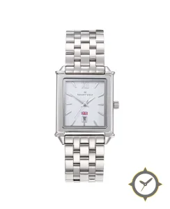 Eine Dress-Uhr mit einem 31.5mm Gehäuse im Vintage-Stil gefertigt aus Edelstahl mit einem Zifferblatt in weiß und einer besonderen "smooth"-Oberfläche.