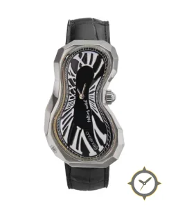 Eine Luxus-Uhr gefertigt aus Silber mit einem Zifferblatt in schwarz und einer besonderen "glossy lacquer"-Oberfläche.