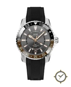 Eine GMT-Uhr mit einem markanten 42mm Auftritt am Handgelenk, gefertigt aus Edelstahl mit einem Zifferblatt in grau und einer besonderen "sunburst"-Oberfläche und einer echten GMT-Funktion, mit der du eine zweite Zeitzone verfolgen kannst.