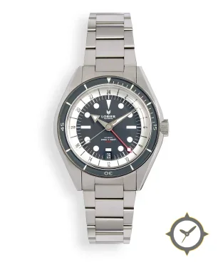 Eine GMT-Uhr mit einem markanten 44.5mm Auftritt am Handgelenk, gefertigt aus Edelstahl mit einem Zifferblatt in marineblau und einer besonderen "matte"-Oberfläche und einer echten GMT-Funktion, mit der du eine zweite Zeitzone verfolgen kannst.