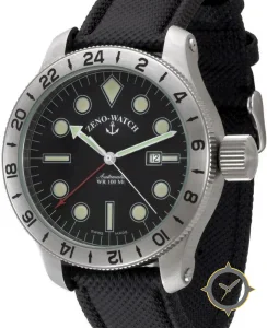 Eine GMT-Uhr gefertigt aus Edelstahl mit einem Zifferblatt in schwarz und einer besonderen "matte"-Oberfläche und einer echten GMT-Funktion, mit der du eine zweite Zeitzone verfolgen kannst.