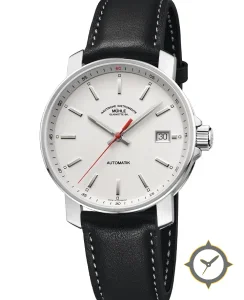 Eine Dress-Uhr mit einem vielseitigen 39.5mm Gehäuse, das an fast jedes Handgelenk passt, gefertigt aus Edelstahl mit einem Zifferblatt in weiß und einer besonderen "matte"-Oberfläche.