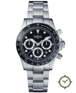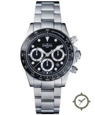 Eine Racing-Uhr mit einem markanten 41.5mm Auftritt am Handgelenk, gefertigt aus Edelstahl mit einem Zifferblatt in schwarz und einer besonderen "glossy lacquer"-Oberfläche.