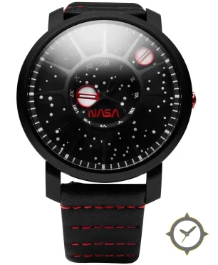 Eine Luftfahrt-Uhr mit einem markanten 50.5mm Auftritt am Handgelenk, gefertigt aus Edelstahl mit einem Zifferblatt in schwarz und einer besonderen "starry, glossy dome"-Oberfläche.