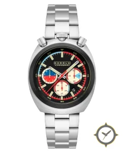 Eine Chronograph-Uhr mit einem vielseitigen 39.5mm Gehäuse, das an fast jedes Handgelenk passt, gefertigt aus Edelstahl mit einem Zifferblatt in schwarz und einer besonderen "matte"-Oberfläche.