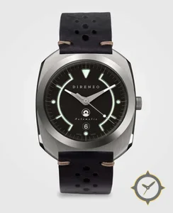 Eine Fahrer-Uhr mit einem markanten 46.5mm Auftritt am Handgelenk, gefertigt aus Edelstahl mit einem Zifferblatt in schwarz und einer besonderen "matte"-Oberfläche.