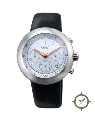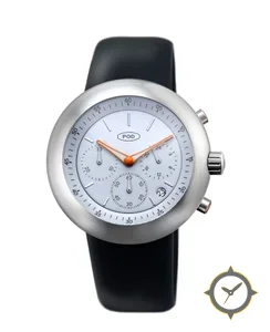 Eine Chronograph-Uhr mit einem 36.5mm Gehäuse im Vintage-Stil gefertigt aus Edelstahl mit einem Zifferblatt in weiß und einer besonderen "smooth"-Oberfläche.