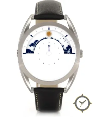 Eine Minimalistisch-Uhr mit einem 31mm Gehäuse im Vintage-Stil gefertigt aus Edelstahl mit einem Zifferblatt in weiß und einer besonderen "smooth matte"-Oberfläche und einer wunderschönen Mondphasenanzeige.