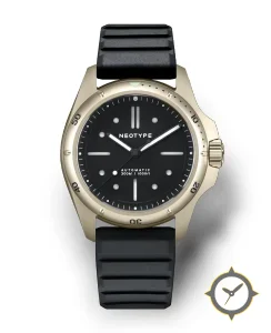 Eine Taucheruhr-Uhr mit einem vielseitigen 39.5mm Gehäuse, das an fast jedes Handgelenk passt, gefertigt aus Bronze mit einem Zifferblatt in schwarz und einer besonderen "matte"-Oberfläche.