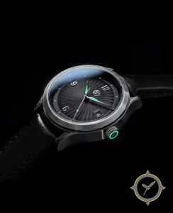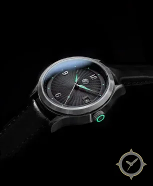 Eine Dress-Uhr mit einem markanten 43mm Auftritt am Handgelenk, gefertigt aus Edelstahl mit einem Zifferblatt in schwarz und einer besonderen "guilloché wavy texture"-Oberfläche.
