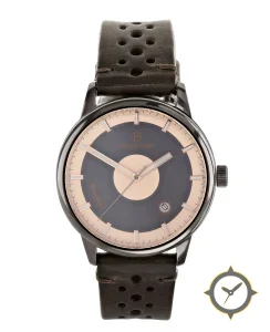Eine Minimalistisch-Uhr mit einem 30mm Gehäuse im Vintage-Stil gefertigt aus Edelstahl mit einem Zifferblatt in grau und einer besonderen "matte"-Oberfläche.