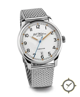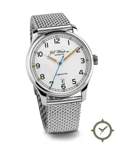 Eine Vintage-Uhr mit einem 31mm Gehäuse im Vintage-Stil gefertigt aus Edelstahl mit einem Zifferblatt in weiß und einer besonderen "smooth lacquer"-Oberfläche.