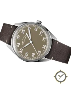 Eine Pilot-Uhr mit einem 33.5mm Gehäuse im Vintage-Stil gefertigt aus Edelstahl mit einem Zifferblatt in braun und einer besonderen "matte"-Oberfläche.