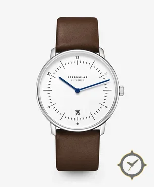 Eine Minimalistisch-Uhr mit einem vielseitigen 39.5mm Gehäuse, das an fast jedes Handgelenk passt, gefertigt aus Edelstahl mit einem Zifferblatt in weiß und einer besonderen "matte"-Oberfläche.
