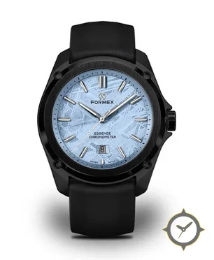Eine Sport-Uhr mit einem 35mm Gehäuse im Vintage-Stil gefertigt aus Edelstahl mit einem Zifferblatt in blau und einer besonderen "meteorite-style textured finish"-Oberfläche.