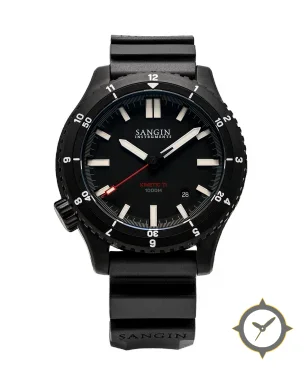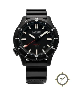 Eine Taucheruhr-Uhr mit einem vielseitigen 40mm Gehäuse, das an fast jedes Handgelenk passt, gefertigt aus Titan mit einem Zifferblatt in schwarz und einer besonderen "matte"-Oberfläche.