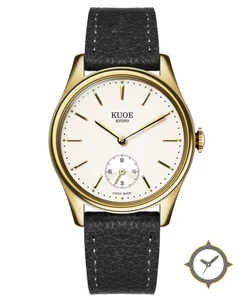 Eine Dress-Uhr mit einem vielseitigen 41mm Gehäuse, das an fast jedes Handgelenk passt, gefertigt aus Gold mit einem Zifferblatt in weiß und einer besonderen "lacquer"-Oberfläche.