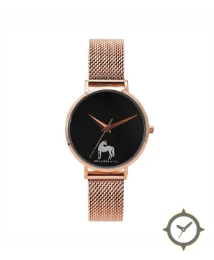 Eine Minimalistisch-Uhr mit einem 26mm Gehäuse im Vintage-Stil gefertigt aus Edelstahl mit einem Zifferblatt in schwarz und einer besonderen "matte"-Oberfläche.