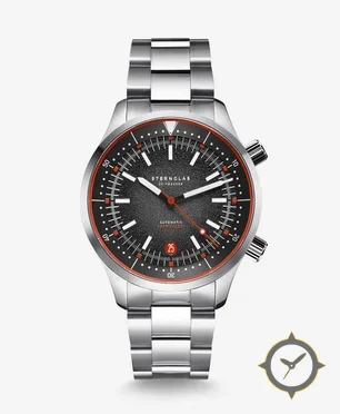 Eine Sport-Uhr mit einem 36.5mm Gehäuse im Vintage-Stil gefertigt aus Edelstahl mit einem Zifferblatt in grau und einer besonderen "textured/grainy"-Oberfläche.