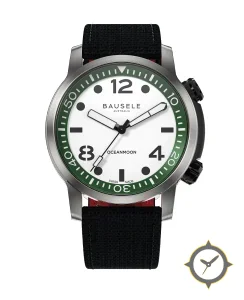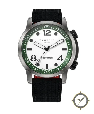 Eine Taucheruhr-Uhr mit einem 35mm Gehäuse im Vintage-Stil gefertigt aus Edelstahl mit einem Zifferblatt in weiß und einer besonderen "matte"-Oberfläche.
