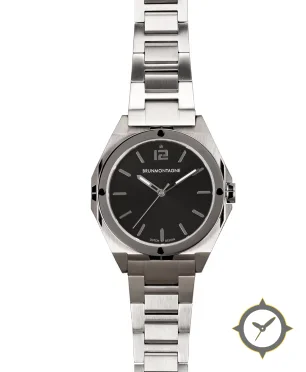 Eine Luxus-Uhr mit einem markanten 41.5mm Auftritt am Handgelenk, gefertigt aus Edelstahl mit einem Zifferblatt in schwarz und einer besonderen "matte"-Oberfläche.