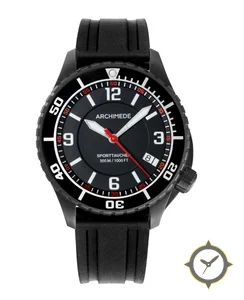 Eine Taucheruhr-Uhr mit einem vielseitigen 38.5mm Gehäuse, das an fast jedes Handgelenk passt, gefertigt aus Edelstahl mit einem Zifferblatt in schwarz und einer besonderen "matte"-Oberfläche.