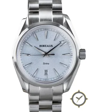 Eine Sport-Uhr mit einem vielseitigen 41mm Gehäuse, das an fast jedes Handgelenk passt, gefertigt aus Edelstahl mit einem Zifferblatt in blau und einer besonderen "frosted sunburst"-Oberfläche.