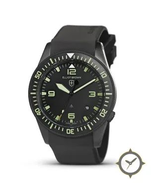 Eine Taucheruhr-Uhr gefertigt aus Edelstahl mit einem Zifferblatt in schwarz und einer besonderen "matte"-Oberfläche.