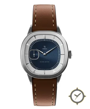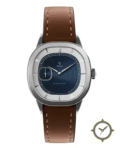 Eine Dress-Uhr mit einem markanten 47mm Auftritt am Handgelenk, gefertigt aus Edelstahl mit einem Zifferblatt in blau und einer besonderen "concentric guilloché / circular grooves with a two-tone silver chapter ring"-Oberfläche.