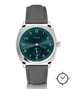 Eine Dress-Uhr mit einem markanten 42mm Auftritt am Handgelenk, gefertigt aus Edelstahl mit einem Zifferblatt in türkis und einer besonderen "sunburst"-Oberfläche.
