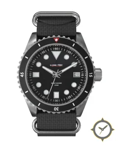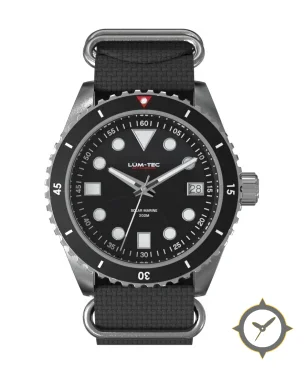 Eine Taucheruhr-Uhr mit einem 36.5mm Gehäuse im Vintage-Stil gefertigt aus Edelstahl mit einem Zifferblatt in schwarz und einer besonderen "matte"-Oberfläche.
