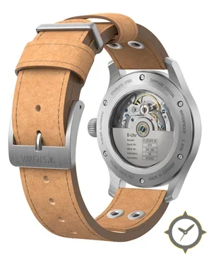 Eine Pilot-Uhr mit einem 34mm Gehäuse im Vintage-Stil gefertigt aus Edelstahl mit einem Zifferblatt in schwarz und einer besonderen "matte"-Oberfläche.