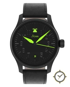 Eine Pilot-Uhr mit einem 36.5mm Gehäuse im Vintage-Stil gefertigt aus Edelstahl mit einem Zifferblatt in schwarz und einer besonderen "matte"-Oberfläche.