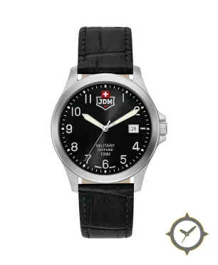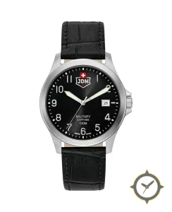 Eine Militär-Uhr mit einem vielseitigen 39mm Gehäuse, das an fast jedes Handgelenk passt, gefertigt aus Edelstahl mit einem Zifferblatt in schwarz und einer besonderen "matte"-Oberfläche.