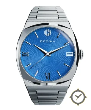 Eine Luxus-Uhr mit einem vielseitigen 41mm Gehäuse, das an fast jedes Handgelenk passt, gefertigt aus Edelstahl mit einem Zifferblatt in blau und einer besonderen "guilloche"-Oberfläche.