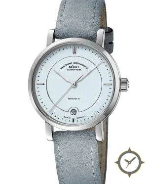 Eine Dress-Uhr mit einem 30mm Gehäuse im Vintage-Stil gefertigt aus Edelstahl mit einem Zifferblatt in blau und einer besonderen "smooth matte"-Oberfläche.