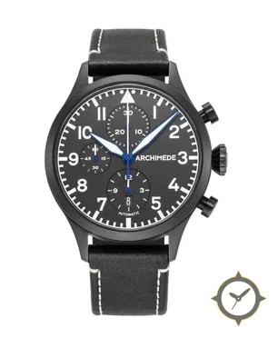 Eine Pilot-Uhr mit einem markanten 43.5mm Auftritt am Handgelenk, gefertigt aus Edelstahl mit einem Zifferblatt in schwarz und einer besonderen "matte"-Oberfläche.
